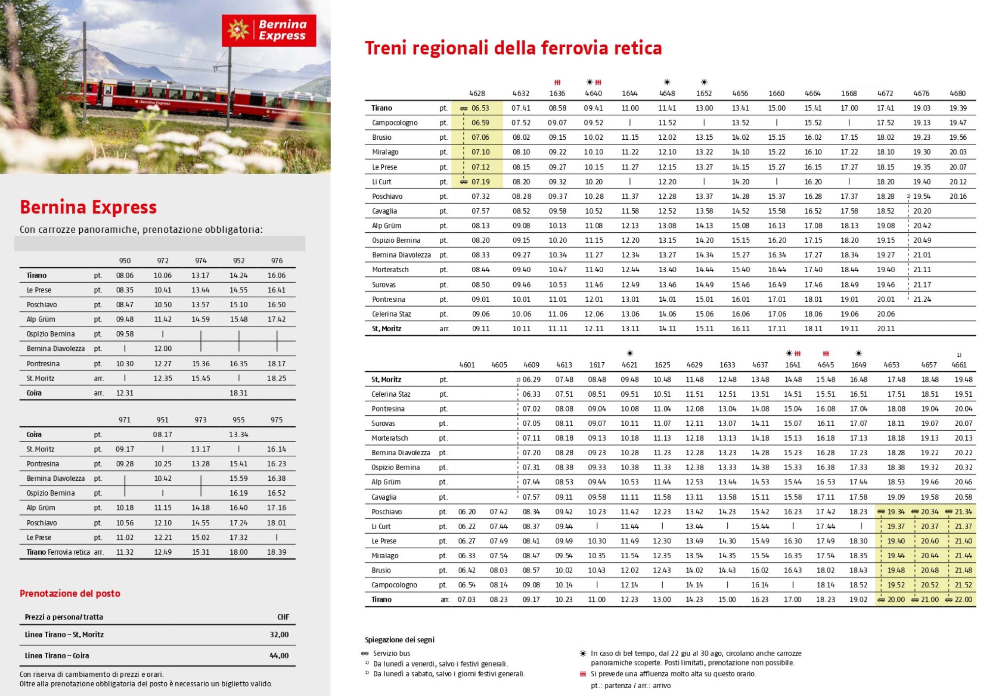 da Tirano delle ore 09.18 e da St.Moritz delle ore 16.14